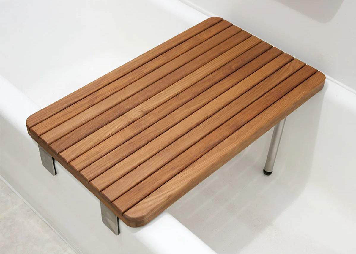Solid teak slats are perfectly spaced for comfort, water flow, and slip resistance, offering both beauty and function in the bath.