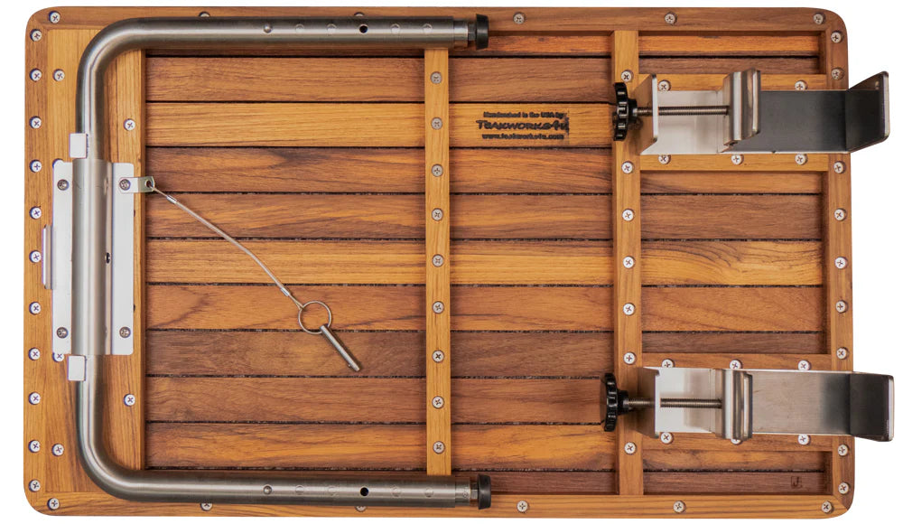Crafted with sleek teak slats and a stainless steel frame, it offers solid stability with a warm, modern look. Adjustable clamps rest over the tub edge, while non-slip legs anchor securely inside. When not in use, the legs fold flat for easy storage.